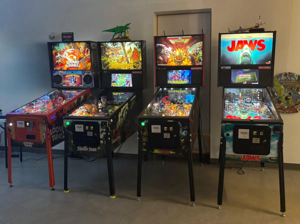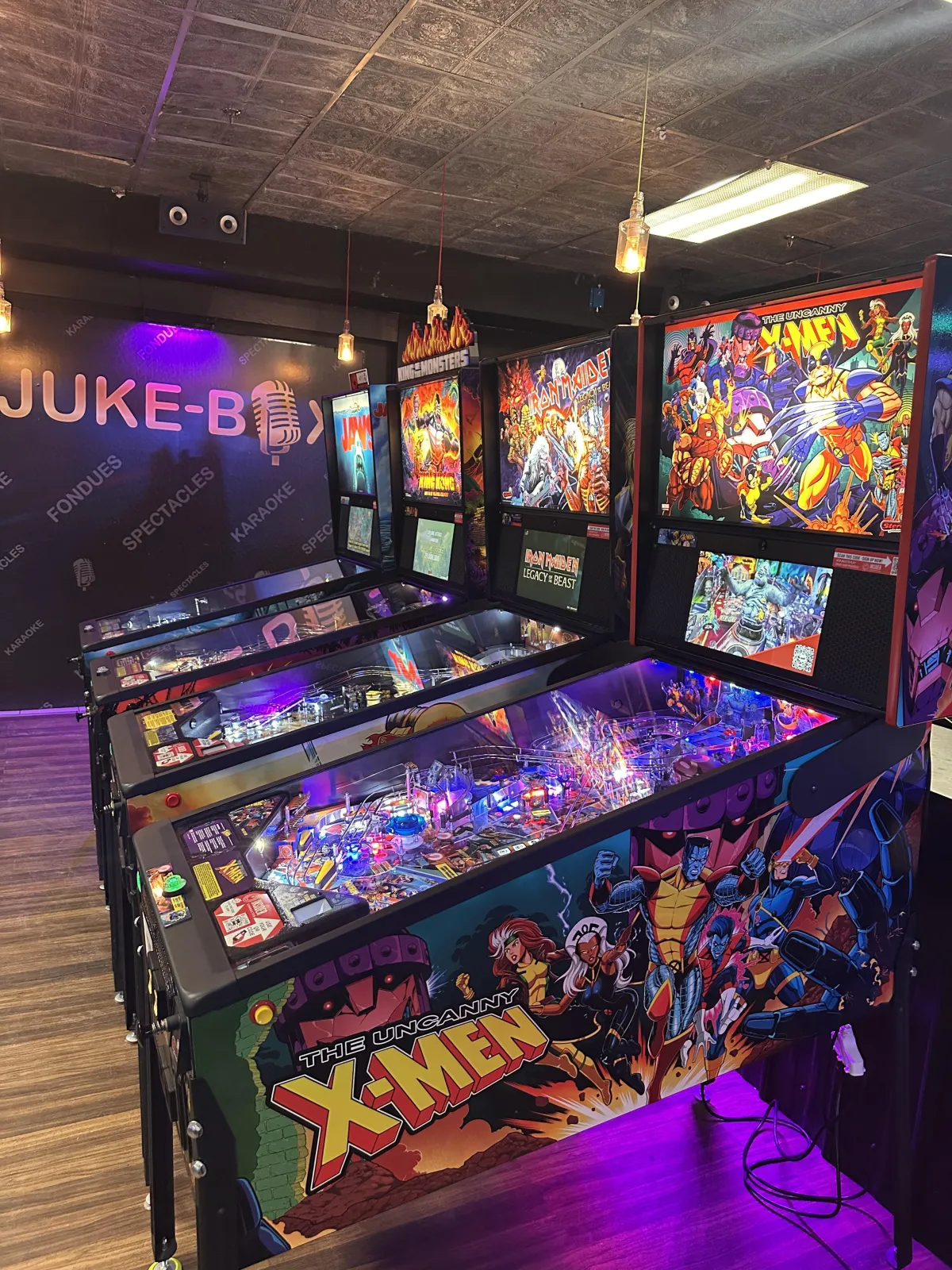 Nous proposons une sélection variée de machines à boules (pinballs) sur des thèmes différents ainsi qu'un jeu classique de Pac-Man.